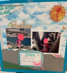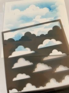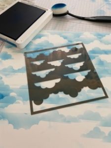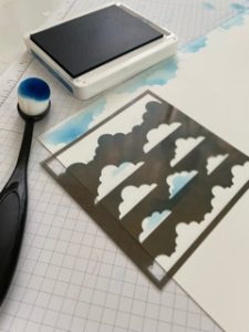 I used the cloud mask that came in a Paper Pumpkin (#157037) to create clouds on this scrapbook page. I also used blending brushes on page 129 in annual catalog, item #153611 they come in a set of 3.