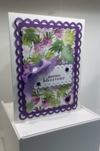 I also used the size smaller of the previous scalloped contour die to cut a rectanle of the grape print from the Berry Blessings DSP. I adhered this to the Gorgeous Grape rectangle and then glued onto the card front. Thus the DSP was what I wanted to draw attention to.