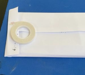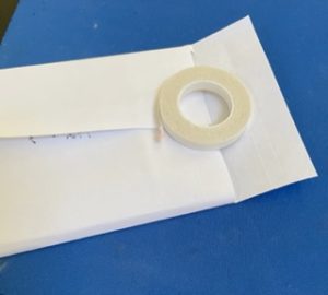 Then put tear & tape on the edge of the 1″ panel that should be on the left side. With take-a-pick tool remove the release paper and fold over onto the envelope.