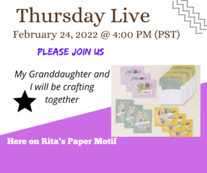 Join us at Rita’s Paper Motif on Facebook.