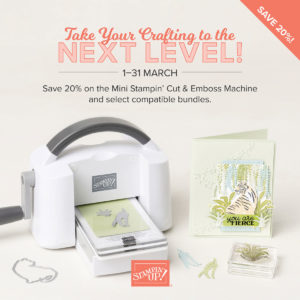 During the month of March, you can snag the Mini Stampin’ Cut & Emboss Machine at a 20% discount! This miniature machine is compatible with a large selection of Stampin’ Up! embossing folders and dies. Build your craft collection and combine the Mini Stampin’ Cut & Emboss Machine with any (or all!) of the select stamp-and-die bundles that are also available for 20% off during the month of March!