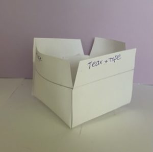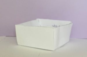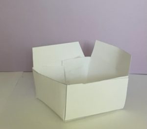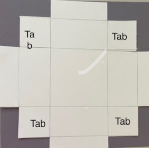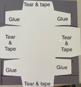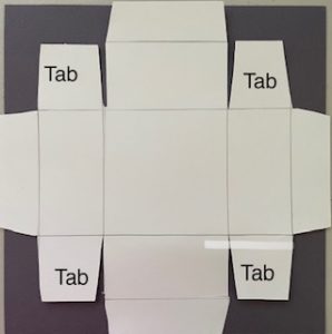 - Now fold the tabs with glue back the tabs onto the appropriate rectangle to create the box. Template below.