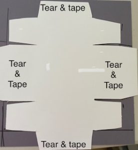 - Then remove release paper from tear & tape and fold down inside of box to finish.