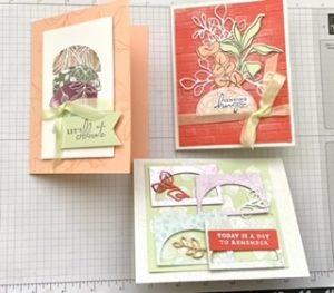 Not only are these cards very nice but they look like a lot of work. I am here to tell you, they are not! Also in preparing for the clsses I was impressed that there was very little waste of card stock.