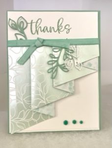 The Drape Fold is also referred to as the Curtain Fold as well as the Acordian Fold. I refer to it as the Drape Fun Fold because it does remind me of how our draperies (window coverings) used to hang framing the windows in a formal living room. However you refer to the fold one thing is for sure, it lends character to any card.