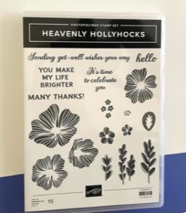Discovering the stamp set Heavenly Hollyhocks reminded me of a time in my youth. When I was in kindergarten a neighborhood friend and I would pick holly hocks from a neighbor’s flower garden. One day the neighbor caught us picking her flowers and showed us how to use the flowers and blooms to create ladies with beautiful ball gowns. After we created the fancy ladies the neighbor lady, brought out aa pan of water and showed us how to float the flower dolls. We would spend hours pretending our dolls were dancing at a fancy ball. Let’s just say we recreated Princesses on Water.