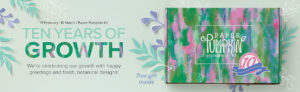 It’s Paper Pumpkin’s 10-year anniversary and we want to celebrate how much we’ve grown! This month’s kit is all about happy greetings, organic and botanical designs digitally painted by our in-house artists, along with all-occasion sentiments to celebrate the happy moments in life and recognize the people around you who help you grow!