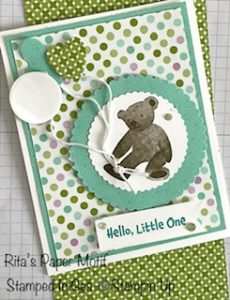 This cute card was made using the Dandy Designs Designer Series Paper offered in the January-February 2023 Sale a-bration catalog. Paring this cute designer series paper with a cute stamp set will create a perfect card for a small child. I used “All For Baby” stamp set. Please be adivsed that this stamp set has retired but below are some excellent suggestions for stamp sets to use.