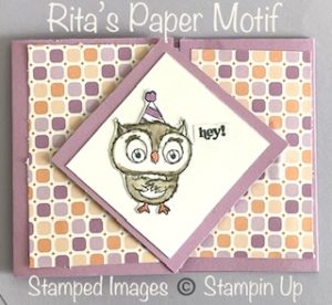 This card doubles as a gift card holder. I also used the Dandy Designs Designer Series Paper from the Sale a-bration catalog. The very cute owl image was created by using the owl stamp set (Adorable Owls #160269). This stamp set is also availabel in the Sale a-bration catalog and can be yours with a qualifing purchase of $50.00.