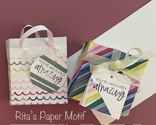 Sometimes I want a small box or bag to use for those small gifts. I always like the tag to match. Sometimes I just like to give trats like candy. When I do I like to make the person I am giving to feel special because they are. So I like to make those special bags myself. Here is my last set of a box, a bag and tags to match.