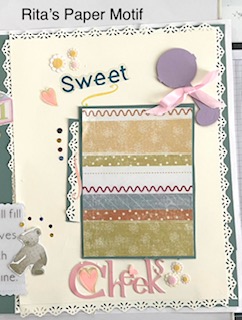 Then she chose embellishments that were kind of vintage and girly.The new Incolor adhesive gems and the ribbon were just the touch.