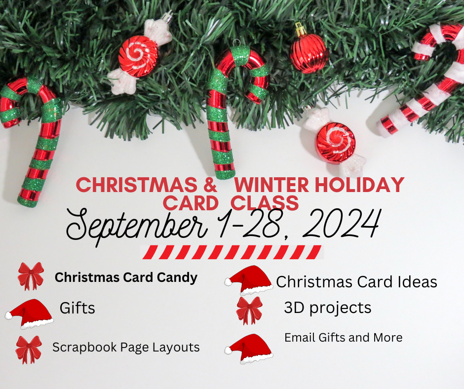 I am so excited to start this Christmas/Holiday Card class. Not only will I share Christmass Card designs but I will be sharing scrapbook page layouts and 3-D projects. As I share these Holiday designs I will also offer opportunities to win many different gifts and give aways.