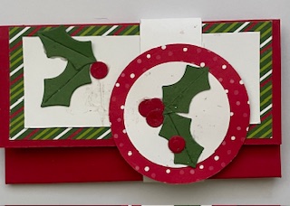 This is a small gift card holder thet was meant to hold a gift card and placed in a Christmas Stocking