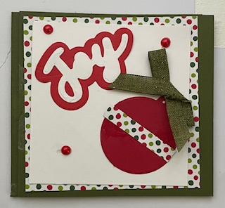 - A sentiment of your choice. I used and old die to cut the word “Joy” and the red shadow.