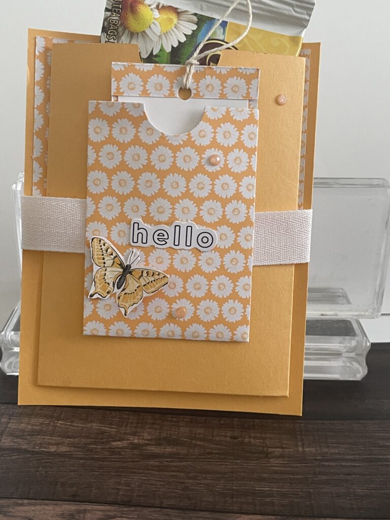 I am planing to send this card to my sister in-law. She likes herbal tea so I put some teabags in the big pocket and a cheery note in the smaller pocket.