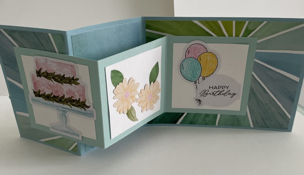 - A 3” x 9” Garden Green card stock https://www.stampinup.com/products/cardstock-8-1-2-x-11-garden-green?demoid=2242482 With long side facing up score at 3” and 6”