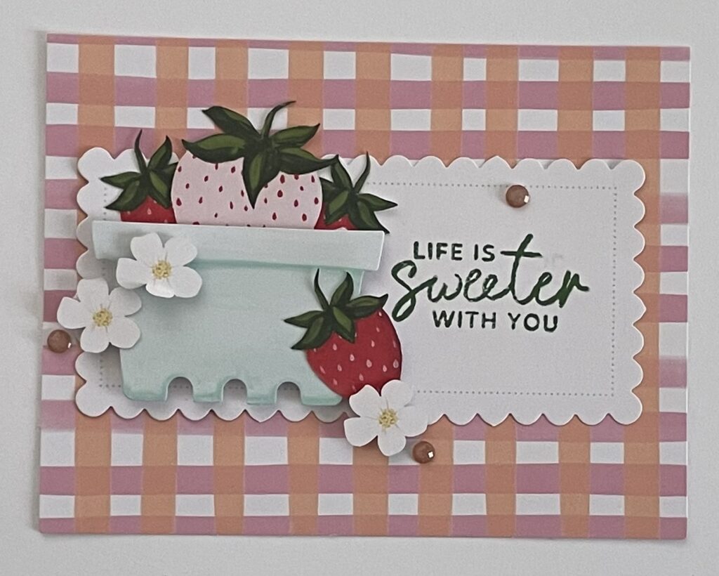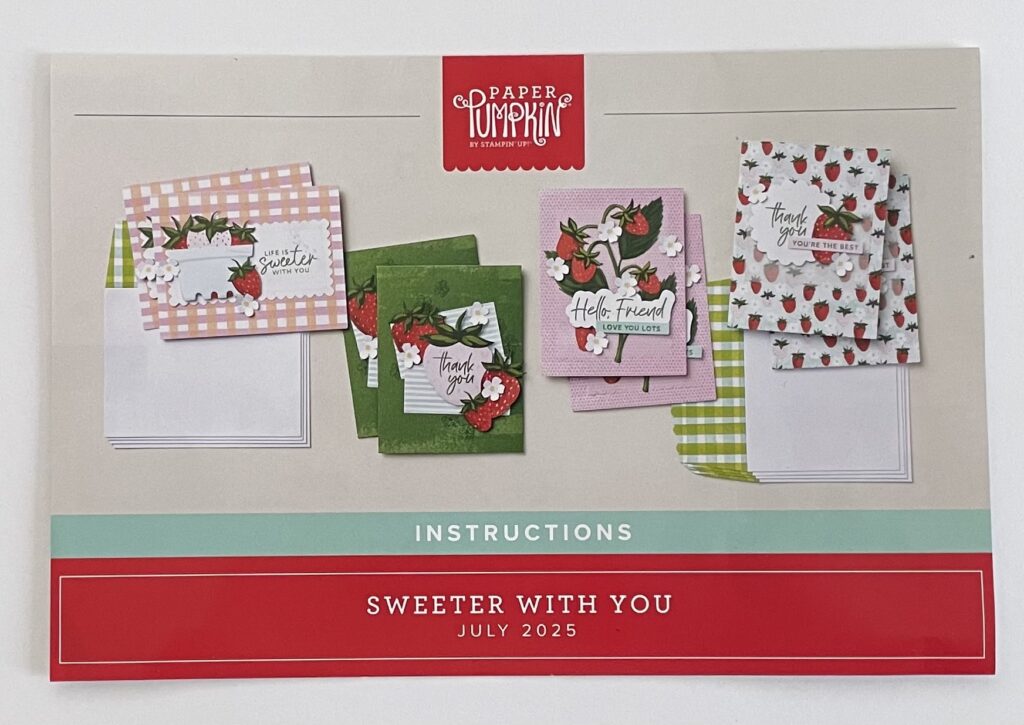 I would like to share what was in my Paper Pumpkin with you. The July 2025 Paper Pumpkin’s theme was Sweeter With You. Below is a picture of the contents that was in the box.