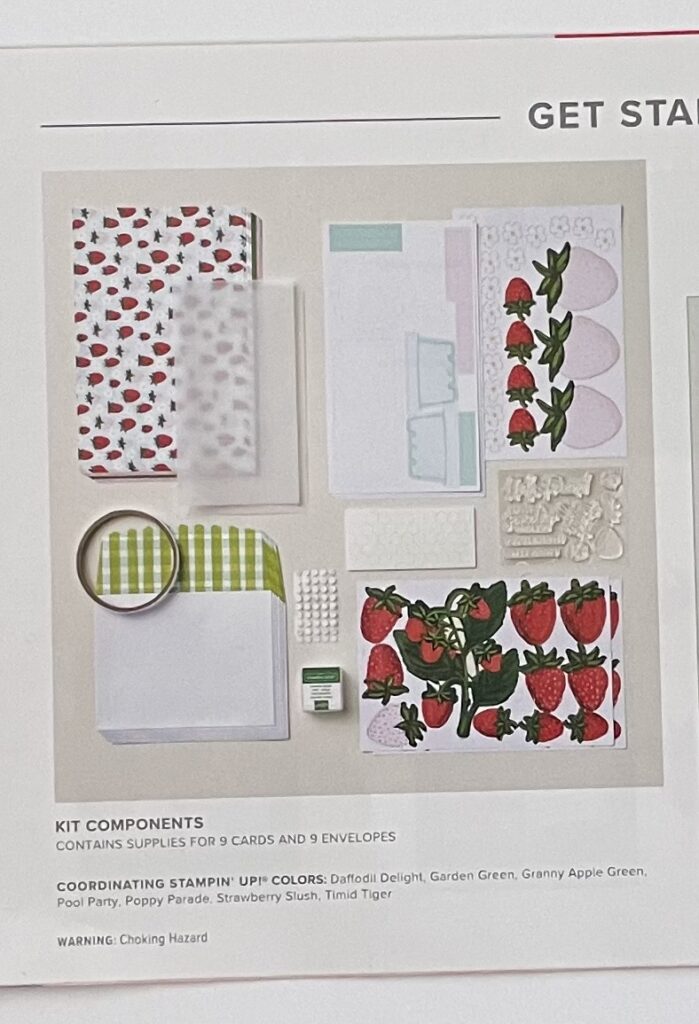If the Paper Pumpkin requires stamped images, a stampset and the coordinating ink spot are included. This is aprint out of the images of the stamps that were included this month. Also included was a Garden Green ink spot.