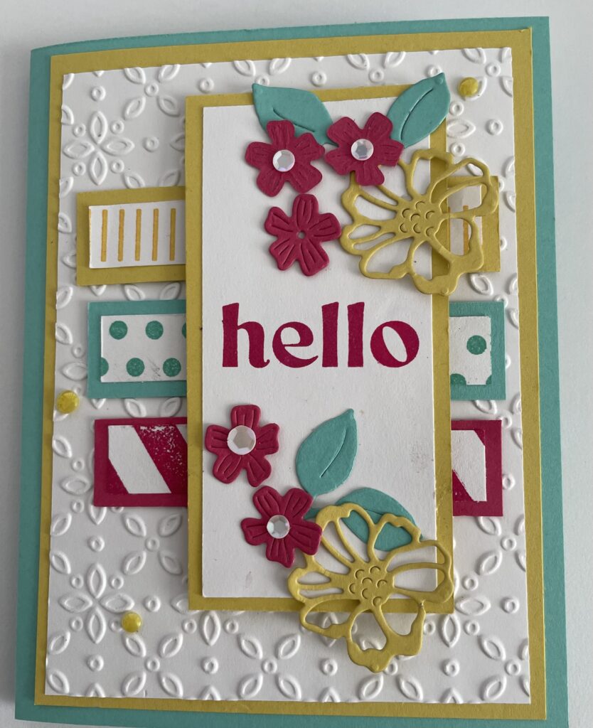 Darling Duckling is a yellowish color and I usually shy away from yellow unless I am thinking of florals. But with the inspiration of a card sketch and the color charts I enjoyed creating this card and more.
