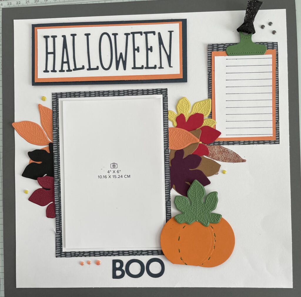 I feel so accomplished because I finally started an album I have been wanting to begin. I have so many pictures that are just waiting for a place to live. One of those pictures is a picture of my granddaughter dressed in an infant Halloween costume of sorts.I will share with you products and demensions of the one page layout.