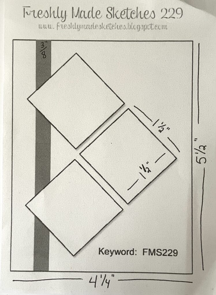 I’m so excited to share a new card inspired by Freshly Made Sketches #229! This layout features three tilted squares, a vertical accent strip, and lots of room for creative flair.