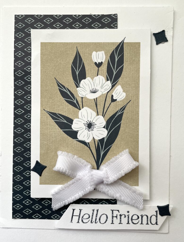 This week’s Sketch Saturday project uses a simple, clean layout that really lets your Designer Series Paper shine. I paired the sketch with the Lovely Blossoms DSP, and the soft florals were the perfect match for a sweet “Hello Friend” card.